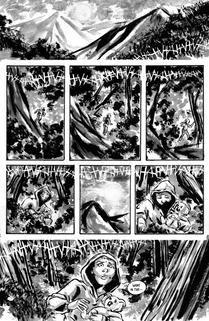 IPI owner, Gerry Huntman, explains: “IPI Comics only does genre, and when editor-in-chief, Christopher Sequeira, brought me writer-artist Hayden Fryer’s project I was impressed at its sophistication as well as its sheer commerciality. This is something of a siege-horror in remote forestland alongside a cove, but it is haunting in its psychology, too. The characters are so vivid and real, and bring pain and attitudes with them we don’t normally see so convincingly portrayed in commercial dark fiction. And the gorgeous, grey wash-tone art is absolutely enthralling. You’ll feel you’re there with these characters in the mysterious environs by the water.”