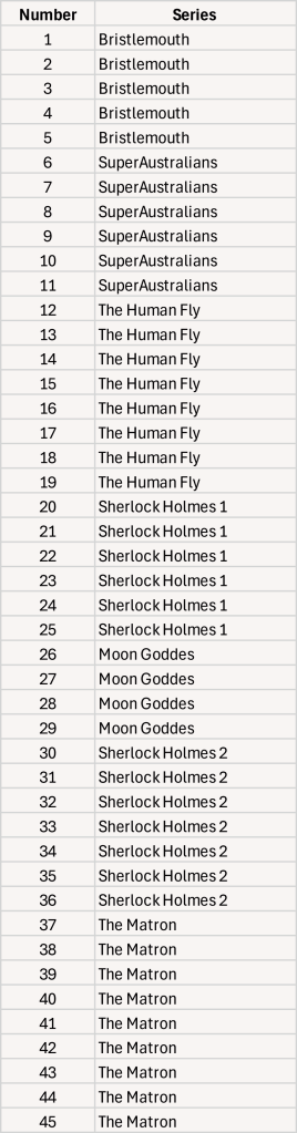 The reason why we think this is a neat idea is because it represents our complete catalogue of comics from Bristlemouth #1 (our first comic published in March 2024) and ongoing. We know there are collectors out there (as some of us at IPI are) and we deliberately limited each card to 500 units – we will never print any more than that. Over time, these cards will become scarce and collectible. While this feature does not represent the backbone of any production effort, such as a Kickstarter campaign (where the comics themselves are obviously centre stage), we believe these little beauties add delightful cream to the cake.